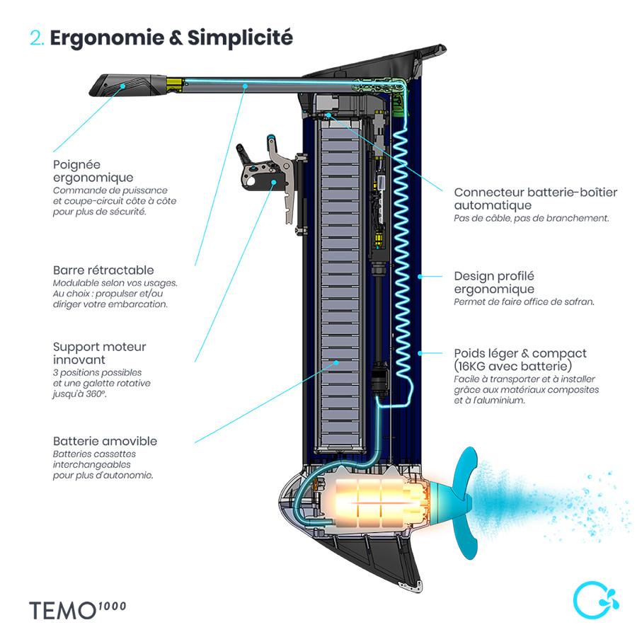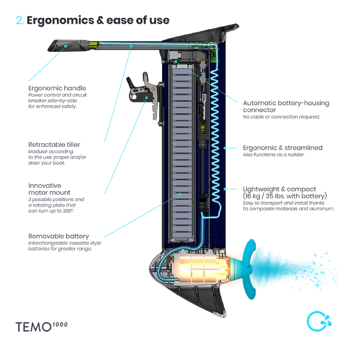 The TEMO·1000 is not just an aesthetically pleasing motor, it has been designed to adapt to any type of boat, with simple installation and use.