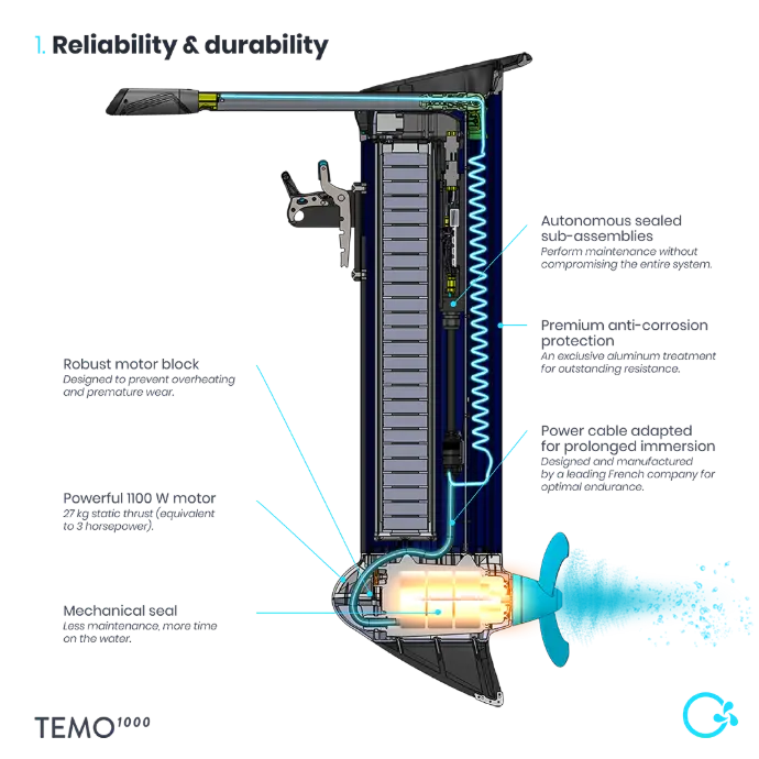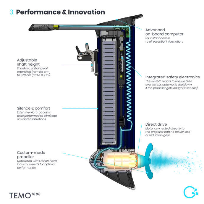 Ein weiterer Pluspunkt: Der TEMO·1000 verfügt über eine einziehbare Steuerpinne.
